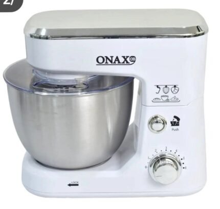 6 سرعات للتشغيل. وعاء للخلط بسعة 3.5 لتر ثلاث رؤوس سهلة التغيير ( خفاقة وخاطفين للعجين ) الطاقة : 1000