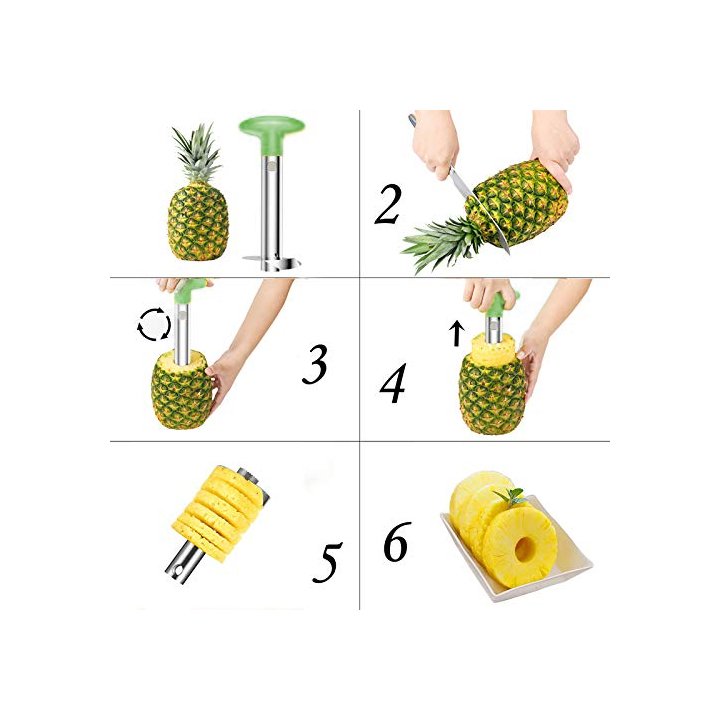 اداة تقشير وتقطيع الاناناس من ماركة Kroff، تصميم مميز مصنوع من الستيل المقاوم للصدأ بمقبض من البلاستيك تستعمل لتقشير وتقطيع الاناناس بطول 24 سم.