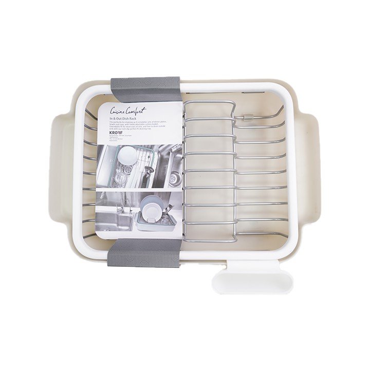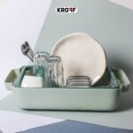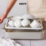 حاملة اطباق من ماركة Kroff، تصميم عملي مصنوع من البلاستيك والمعدن عالي الجودة تتكون من 3 اجزاء، بقاعدة مانعة للانزلاق بابعاد 34×26.5 سم.