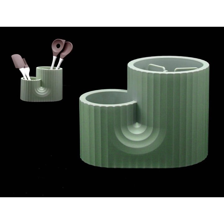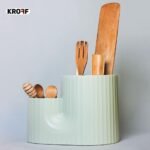 حامل مزدوج لادوات المطبخ من ماركة Kroff، تصميم مميز مصنوع من البلاستيك المقاوم احدهم مقسم من الداخل الى 3 اقسام تستعمل لحمل وتجفيف ادوات المطبخ بابعاد 16×22 سم.