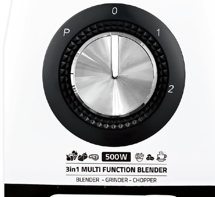 سرعتان مع خاصية النبض • خلاط 3 في 1 متعدد الوظائف مع مطحنة ومفرمة • وعاء خلاط غير قابل للكسر سعة 1.6 لتر • مفرمة PC غير قابلة للكسر سعة 500 مل • غلاف الحقن مع مقبض مطلي بالكروم • محرك من النحاس • نظام قفل الأمان • سهولة التنظيف • طاقة 500 واط