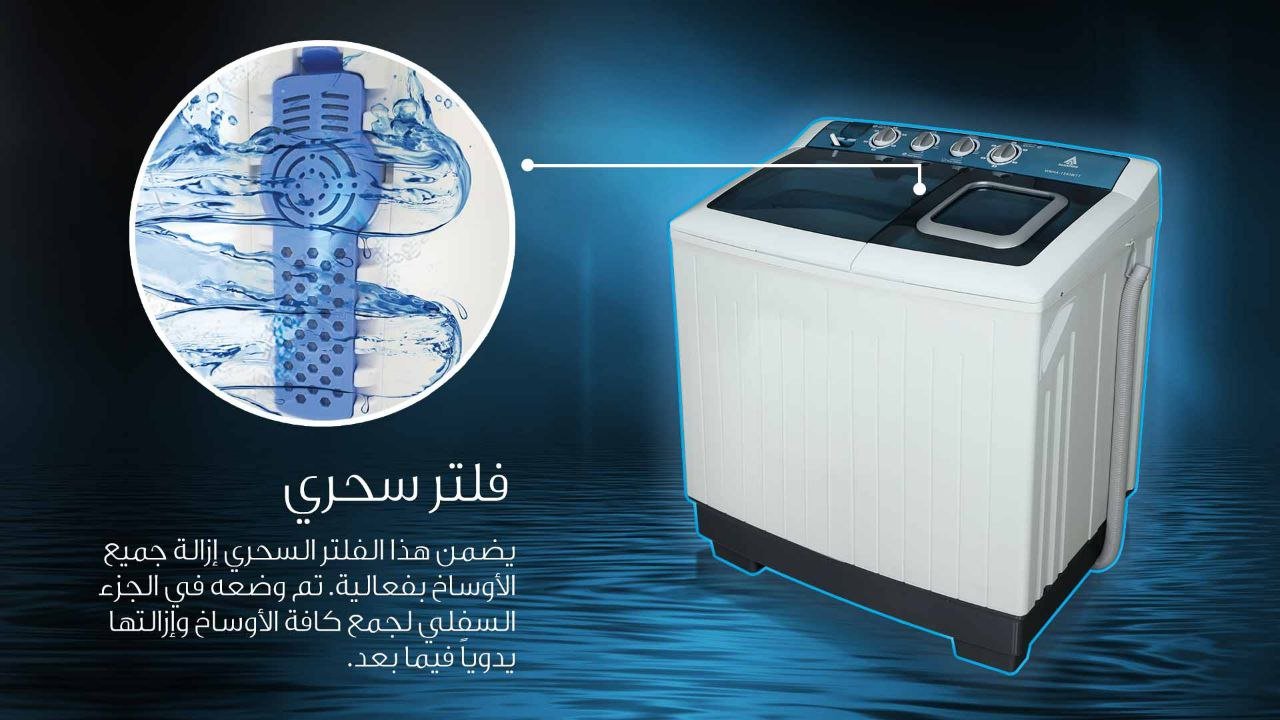 فلتر سحري: يضمن إزالة جميع الأوساخ بفعالية، حيث تم وضعه في الجزء السفلي ليقوم بجمع كافة الأوساخ والرواسب ومن ثم إزالتها يدوياً فيما بعد