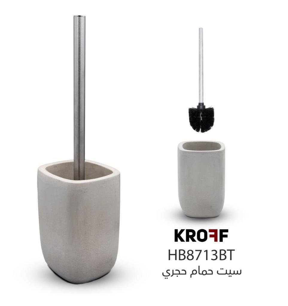 فرشاة تنظيف المرحاض من ماركة Kroff، فرشاة مع حامل مصنوع من الحجر عالي الجودة، تصميم عملي يستخدم للتنظيف بسهولة مع مقبض يد سهل الاستخدام .