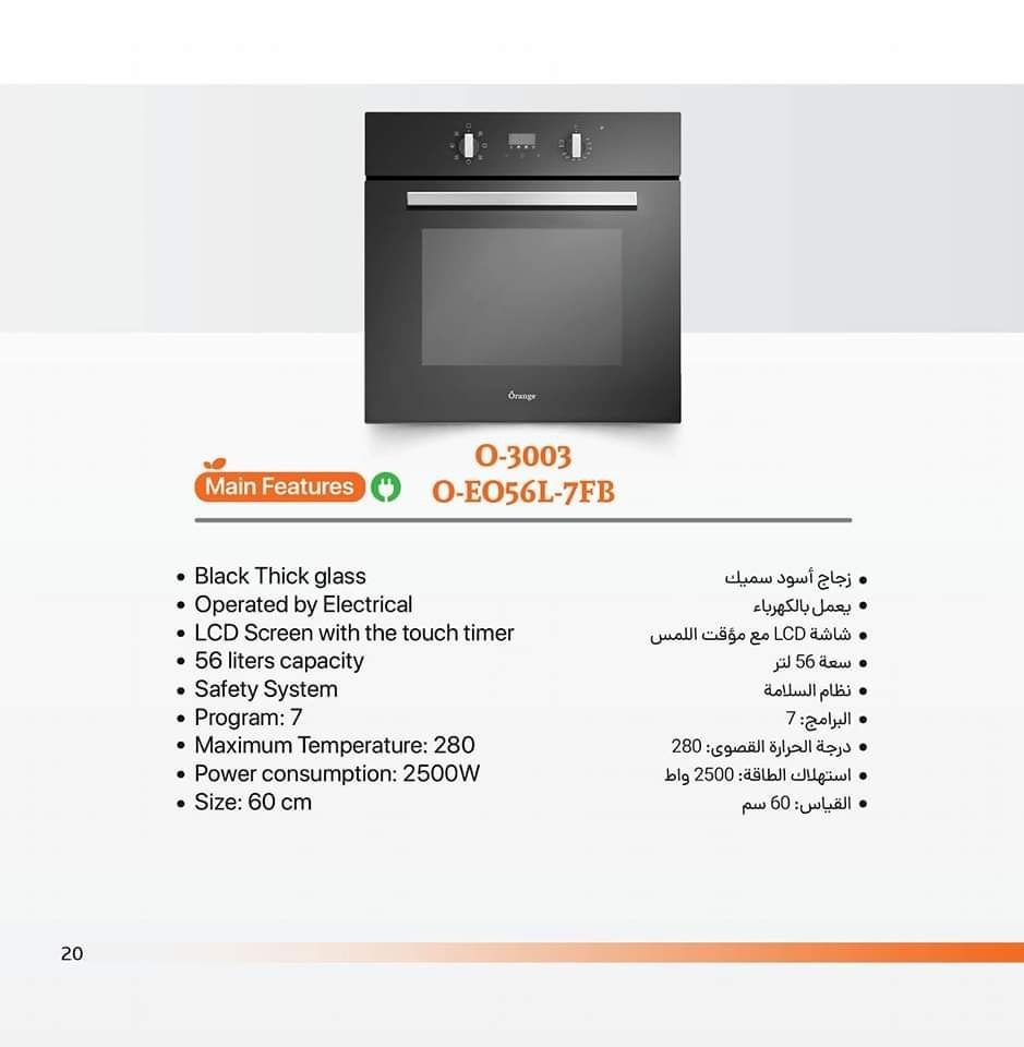 الرئيسية ادوات المطبخ ادوات الطهي فرن بلتن كهربائي اورنج orange شاشه Lcd زجاج اسود 60سم EO56L-7FB