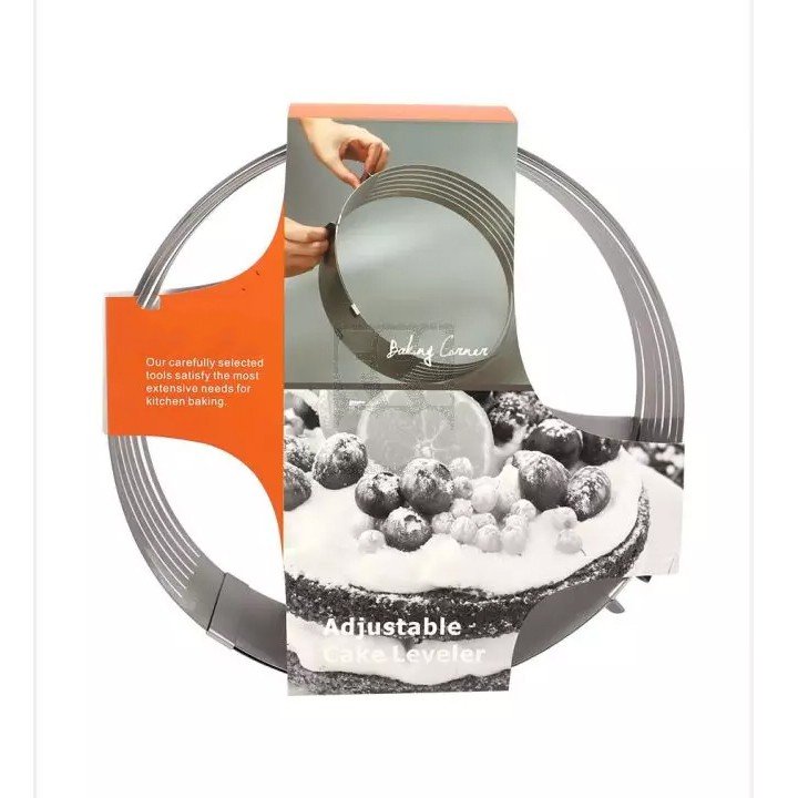 قالب لتقطيع الكيك من ماركة Kroff، تصميم مصنوع من الستيل المقاوم للصدأ يستعمل لتقطيع الكيك الى طبقات متساوية قابل للتكبير والتصغير من قطر 23- 30 سم .