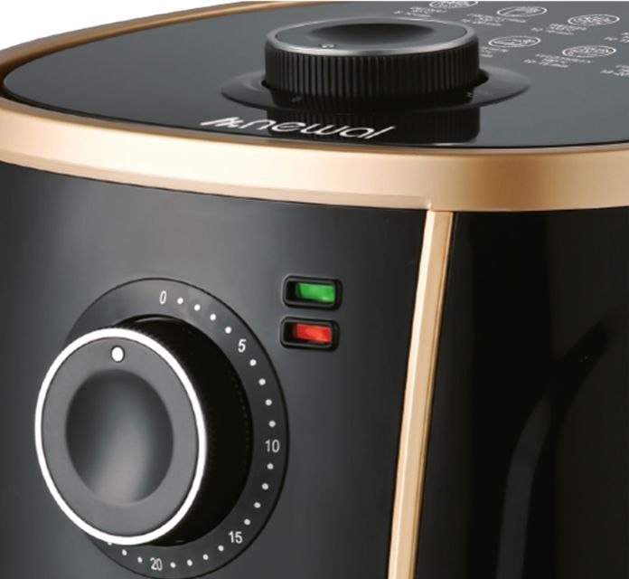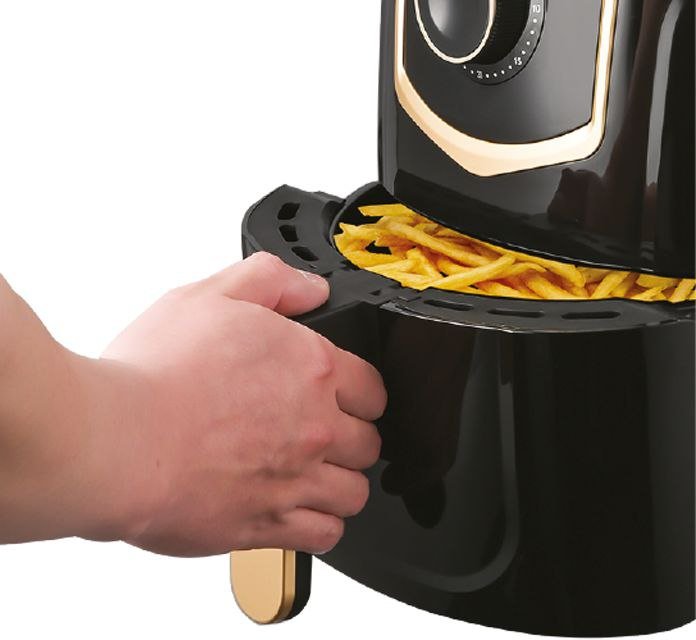 • وعاء مغطى بالتيفلون بسعة 4.5 لتر • التحكم في الحرارة قابل للضبط 80 – 200 درجة • أجزاء قابلة للغسل في ماكينة غسيل الصحون • حماية من الارتفاع المفرطه في الحرارة • نظام تسوية بضغط الهواء وبدون زيت للأغذية الصحية • مؤقت 30 دقيقة • طاقة : 1300 واط