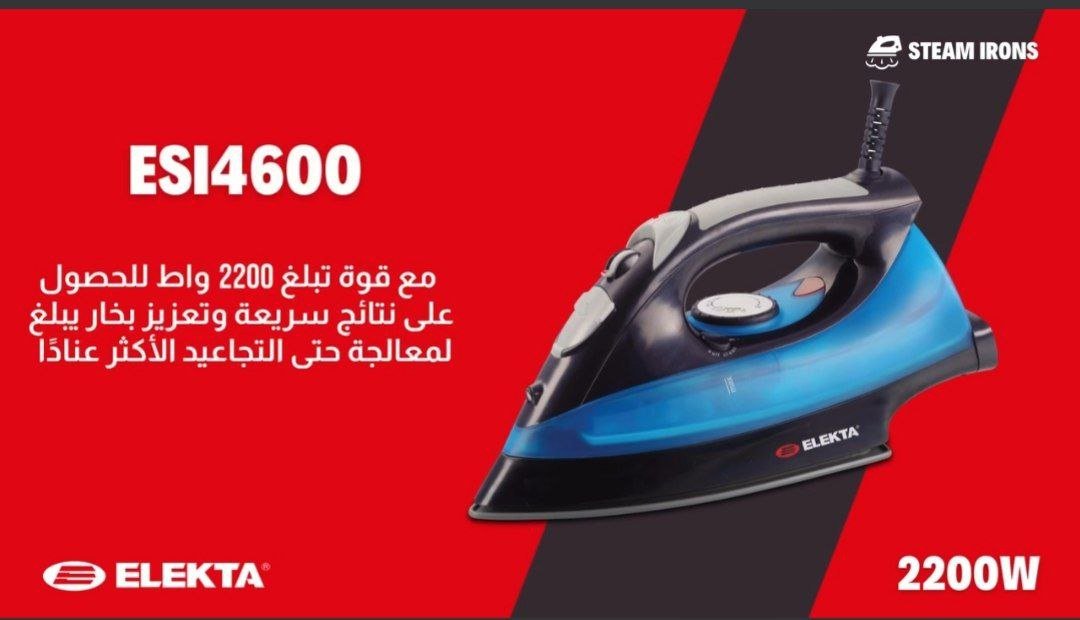 الرئيسية الأجهزة الكهربائية المكوى مكوى2200w Elekta Esl4600