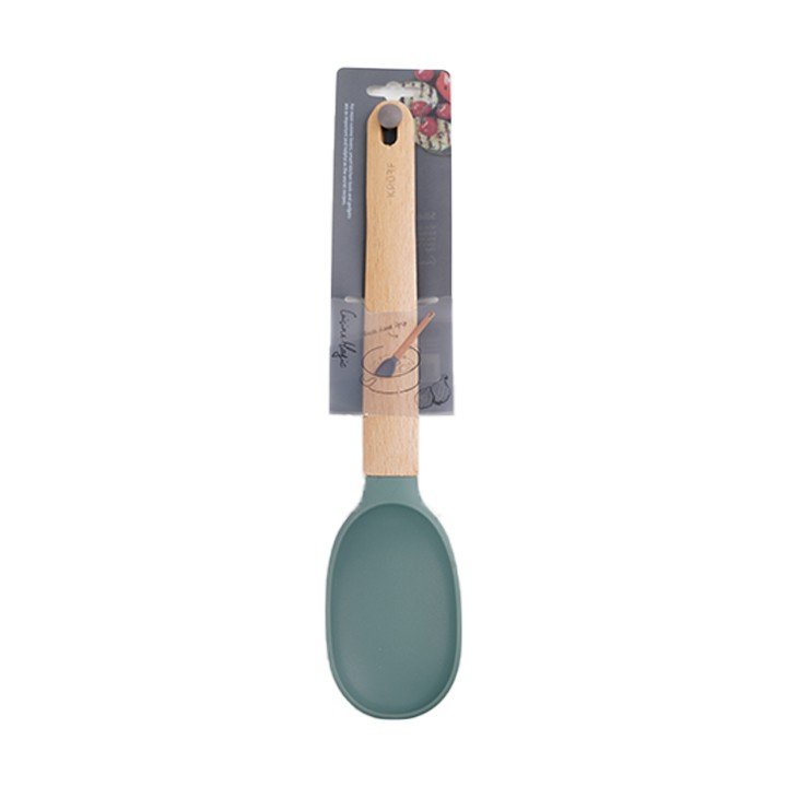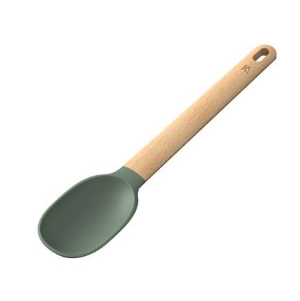 ملعقة تقليب من ماركة Kroff، تصميم عملي مصنوع من السليكون عالي الجودة و مقبض من الخشب سهل الاستخدام قابل للتعليق .